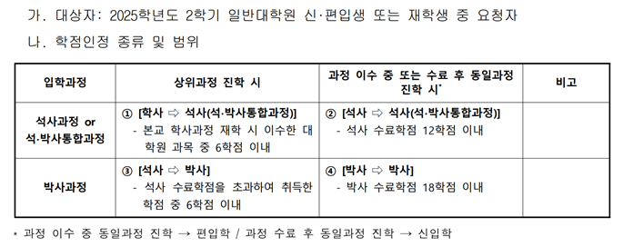 | [학점인정 신청] 2025학년도 2학기 일반대학원 신·편입생 학점인정 신청 안내 | |||