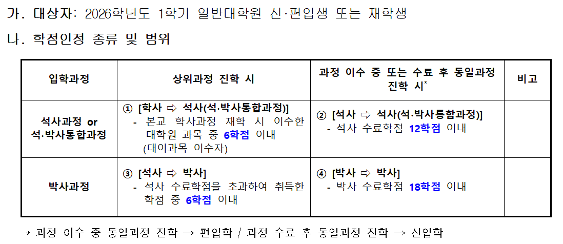 | [학점인정 신청] 2026학년도 1학기 일반대학원 신편입생·재학생 학점인정 신청 안내 | |||